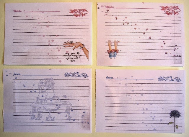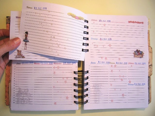 Como habéis visto, en la agenda están los días pero no hay fechas, éstas las tenéis que poner a mano o con un "fechador" así podéis empezarla cuando queráis, con tantas semanas como queráis y para lo que queráis: agenda para organizar vuestra boda, agenda de embarazo, agenda del primer año de vuestro bebé, ?
