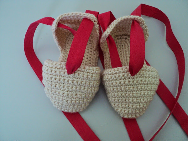 Antes de nacer la nena de mi sobrina me comprometí a hacerle las alpargatas de bolillos. Compre la suela e incluso el patrón pero a medida que las iba haciendo no me acababan de gustar. Seguramente las haré mas adelante y rectificare algunas cosas pero de momento y como el tiempo se echaba encima opte por el plan B: hacerlas de crochet.