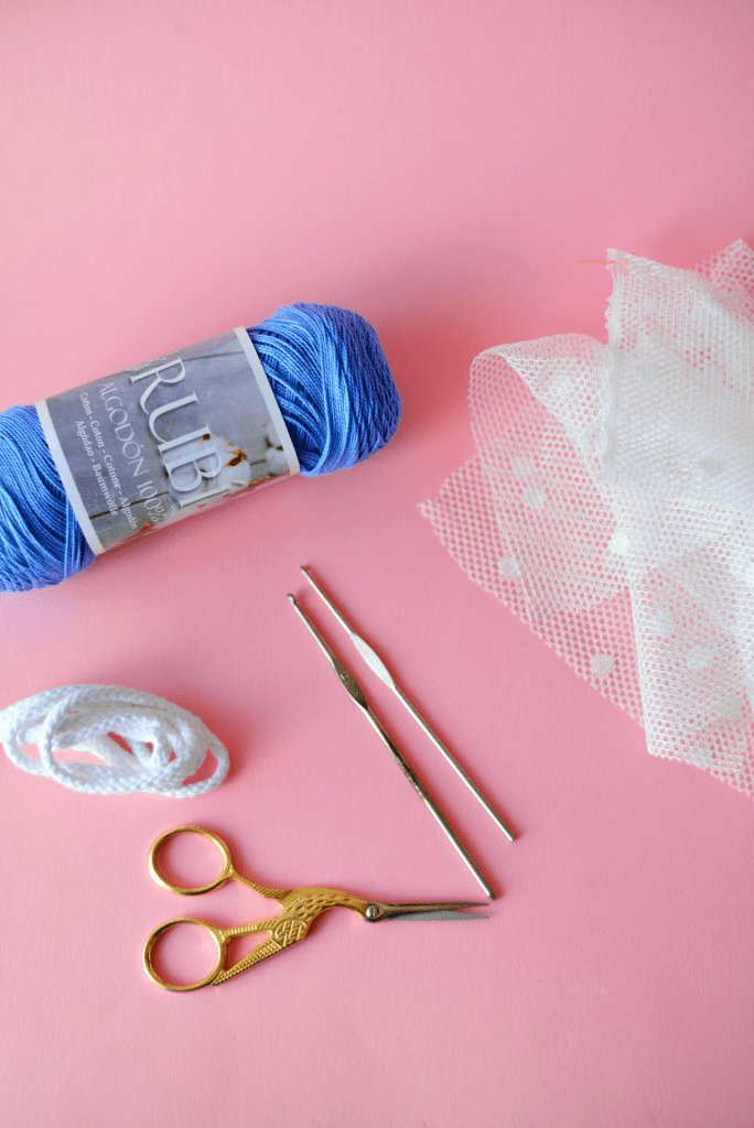 Hilo de algodón bastante fino. En mi caso he utilizado este de Lanas Rubí que suelo usar para bordar y una aguja de ganchillo de 2 mm