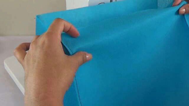 7.Coser las piezas (Fuelle) a los laterales para darle profundidad a la bolsa, recomiendo que el pespunte sea de 0.5cm.