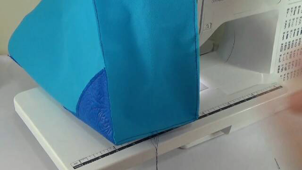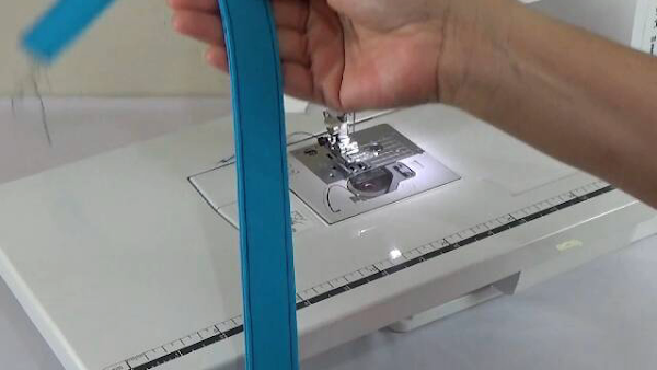 12. Cubrir las costuras externas, la cinta debe doblarse una sola vez a la mitad y colocar encima para pasar una costura de un poco más de 0.5cm., la idea es que quede bien cubierta la costura externa, es importante que lo hagan despacio y al llegar a las esquinas de la base traten de hacer la costura con algo de curva, esta es la segunda parte con mayor dificultad de este proyecto.