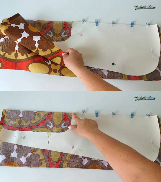 Como ves, hemos hecho el patrón con la mitad del bolso. Utilizando este patrón, cortaremos la tela doble, colocando el patrón en el doblez de la tela, así como te muestro en las fotos de abajo. Marcamos y cortamos dos piezas.
