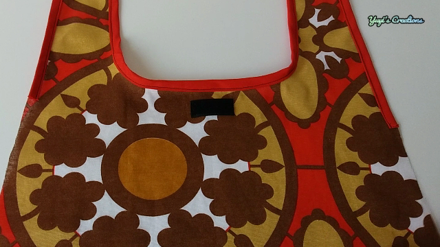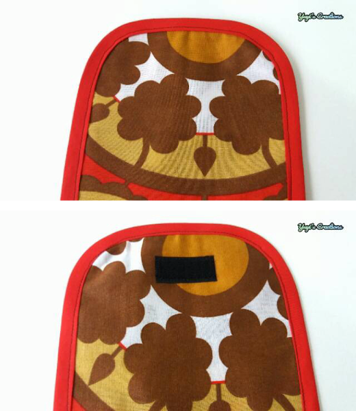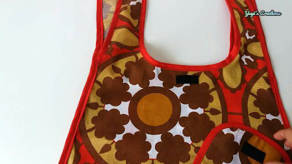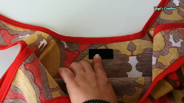 y colocamos encima el bolsillo también con el velcro a la vista y lo cosemos por los lados y por debajo y cosemos también el otro trocito de velcro por el lado de dentro del bolso, pero del lado contrario al bolsillo, así: