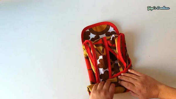 Ahora colocamos el bolsillo, aunque se debe colocar antes de unir ambas piezas del bolso pero se me pasó, hacer esto ahora tampoco representa ningún problema, entonces para hacerlo colocamos el bolso con el lado del velcro a la vista, así: