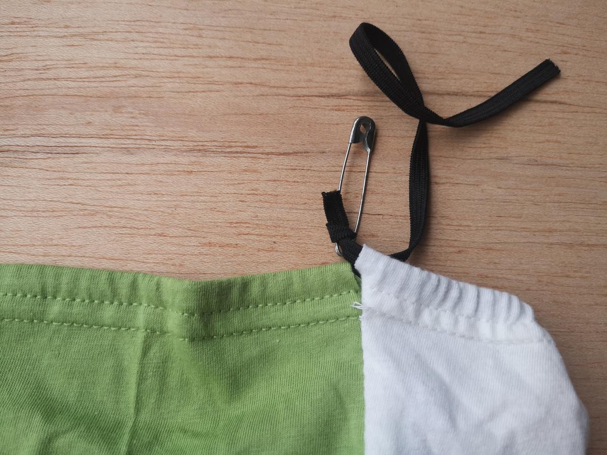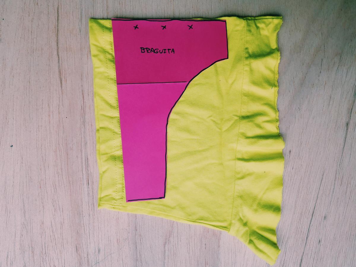 Patrón delantero de una braguita aprovechando dos mangas del mismo color Proceso de costura