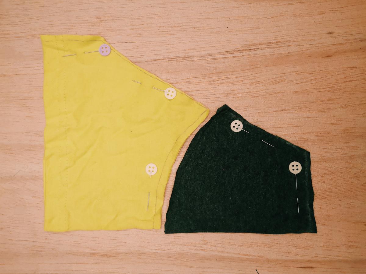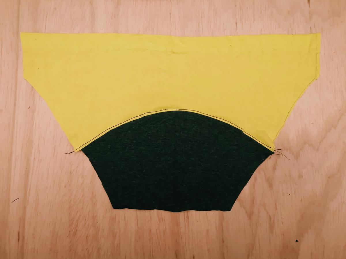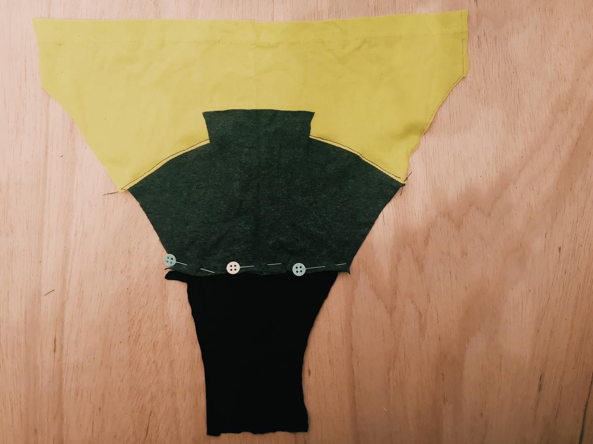 Pieza trasera de la braguita formada por la tela de dos mangas diferentes Para coser la braguita lo primero que haremos será colocar las dos piezas centrales formando una especie de sandwich con la pieza central de forma que al coserlo no se vea la costura ni por fuera ni por dentro.