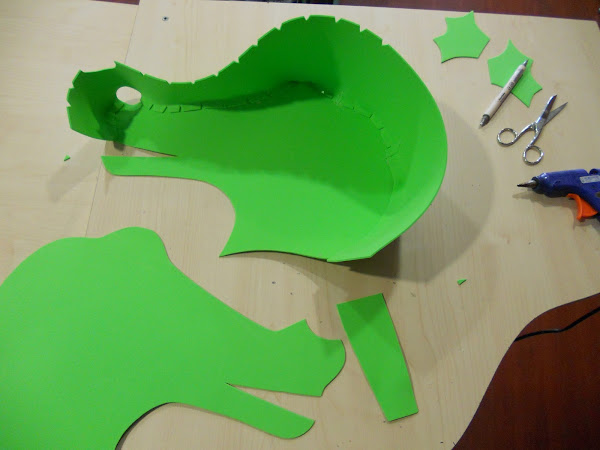 MONTAJE DE LAS PIEZAS QUE CONFORMAN LA CABEZA DEL DRAGÓN DE GOMA ESPUMA O GOMA EVA. EL MEJOR ADHESIVO