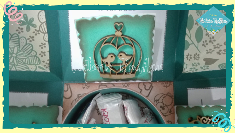 En la parte del centro y con una tira de cartulina y foamy puedes hacer un espacio perfecto para dulces.