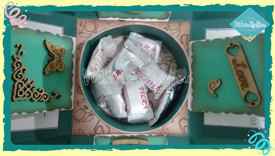 En los laterales de la caja puedes agregar mensajes especiales, fotos o cualquier imagen que sea alusiva a la fecha que estas conmemorando.