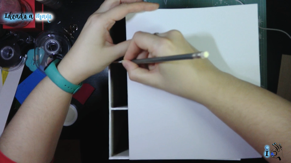 Yo he comenzado midiendo el hueco que tenía y quitándole unos milímetros por cada lado para no tener luego que meter la cajonera a presión. Después, y teniendo en cuenta que voy a utilizar cartón contracolado de 2mm de espesor, corto las piezas para hacer la estructura exterior, que van a ser 2 piezas de 26x216cm, 2 piezas de 26x19cm (una de ellas será la base) y una pieza de 216x186cm que será la trasera, porque la cajonera al final tendrá un ancho de 19cm, un profundo de 26cm y un alto de 22cm. Con estas piezas y cola de carpintero armo la estructura externa.