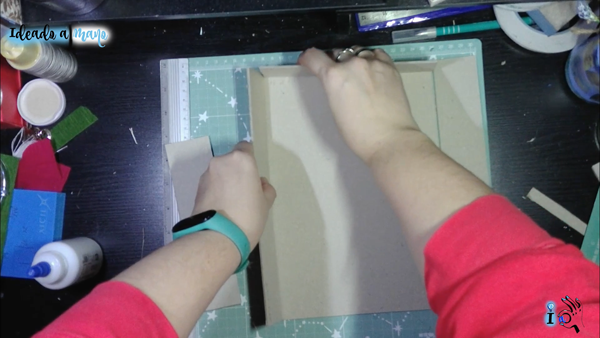 Una vez hecho esto es hora de hacer los cajones. A mi me gusta esperar hasta ahora para asegurarme de las medidas, de modo que mido el interior del hueco y le quito algunos milímetros para estar segura de que el cajón tenga algo de holgura. De alto le puedo dar todo lo que quepa, pero yo le doy 45cm a cada cajón porque es una altura suficiente y así gasto menos cartón, y eso no impide que luego pueda meter en los cajones cosas del alto que me permita el hueco.