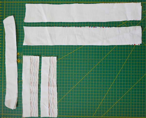 Para ello tomaremos la pieza 7, la doblaremos por la mitad y la coseremos por los extremos: