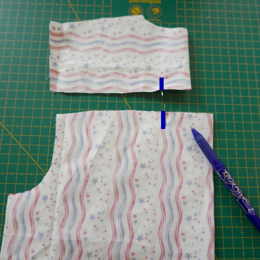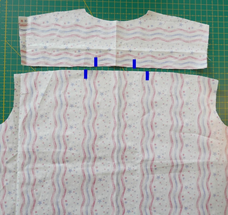 Para ello tomaremos las piezas que hemos cortado con el patrón y marcaremos las zonas del canesú y parte superior de la espalda donde después deberán encajar.