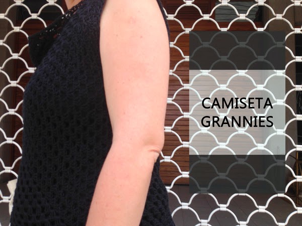 Pero tenía claro que no iba a caer en la moda de llevar puesto algo hecho de ganchillo. Y cuando Núria nos propuso hacernos una camiseta con un par de grannies, me negué en redondo y mantuve mi negativa... hasta que Laura, otra de las piratas, apareció un día con su camiseta de grannies y nos dejó a todos con la boca abierta. Claro que Laura es un pibón, que quede claro, yours truly no le puede hacer sombra, ni lo intenta.