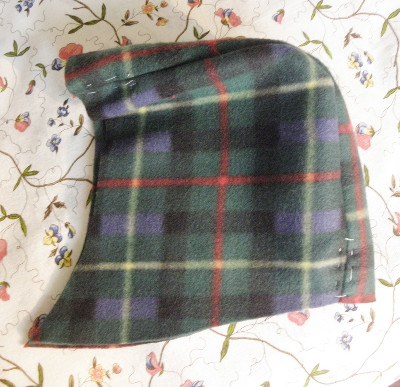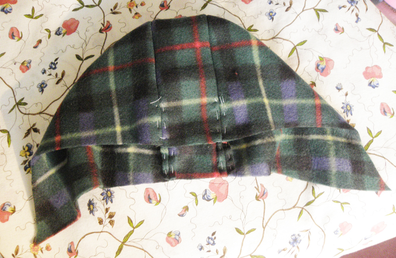 Como se puede ver ,doblada la capa por la mitad, el orifico del cuello queda desplazado del centro para que la espada sea más larga que el delantero.