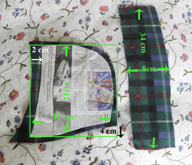 Medidas de la capucha, dos piezas, y de la tira central. Este mismo patrón hacerlo igual en tela de algodón para el interior.