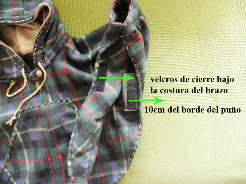 .Para ajustar la capa a los movimientos del niño, coser en el lateral del cuerpo de la capa unas piezas de velcro.