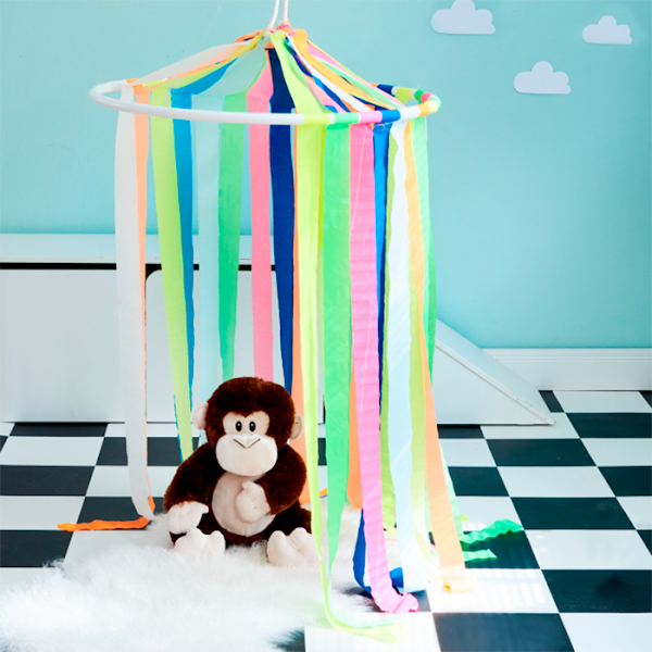 Todo lo que necesitas es un Hula Hopp y muchas cintas de colores.