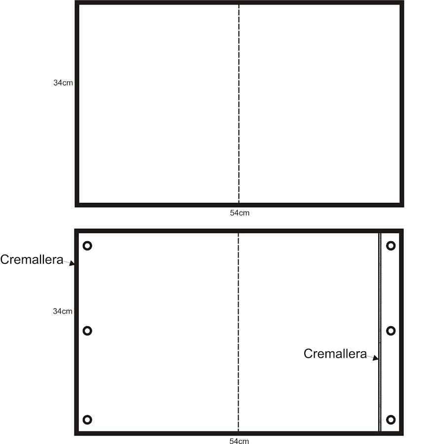 Forro (todas opciones): 40 x 150 cm· - 2 cremalleras de 35 cm