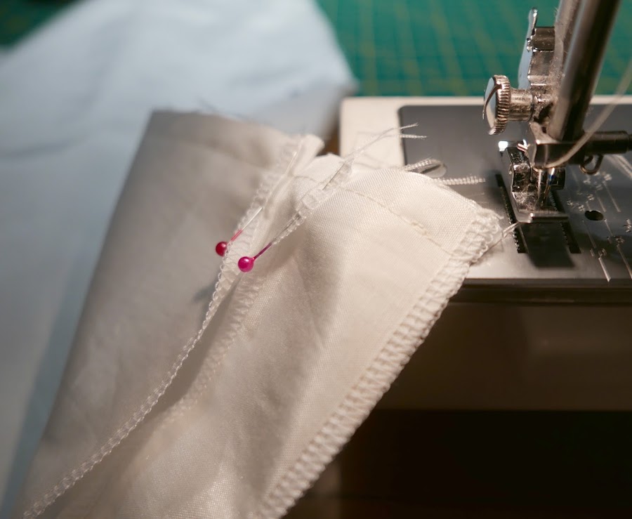 9. Cosemos los laterales, por donde hemos colocado los alfileres.