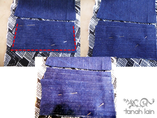 Lo primero que haremos será planchar los rectángulos de mezclilla de la siguiente forma: