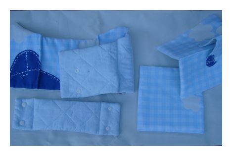 13. Colocamos los snaps en la casita, pero sólamente en la guata. De este modo quedará ocultos al exterior: