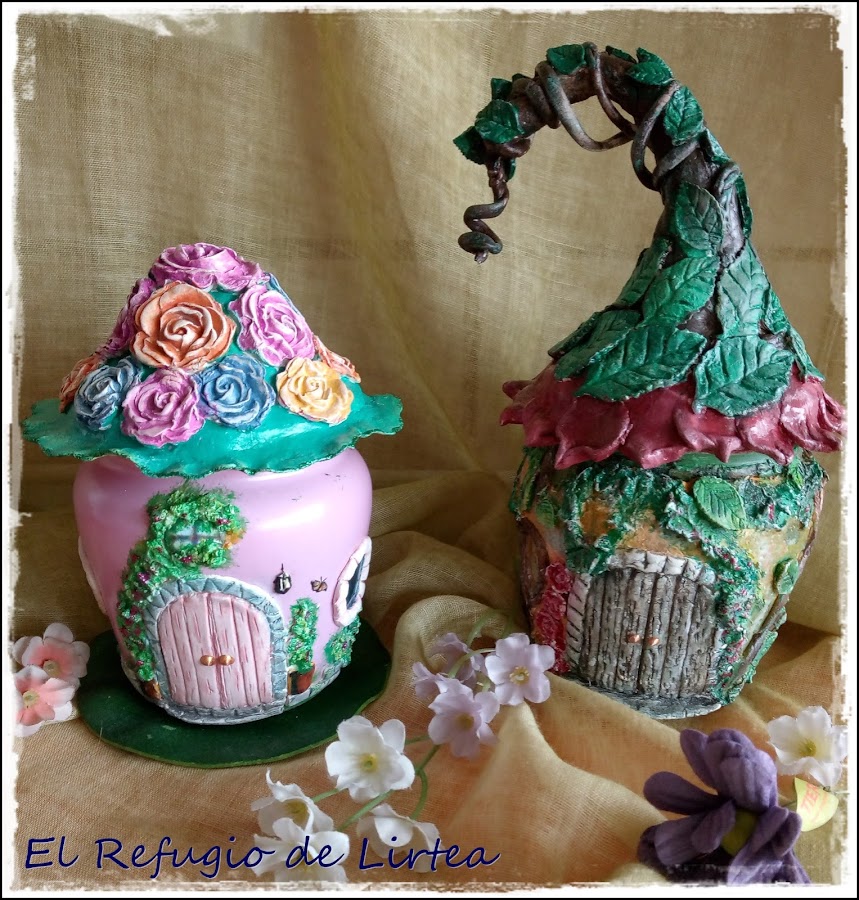 Os dejo la casita del hada y la del gnomo que en un principio hice y... pensándolo bien, ahora que veo las dos juntas, tenía razón mi sobrina, la primera es mas para un gnomo.