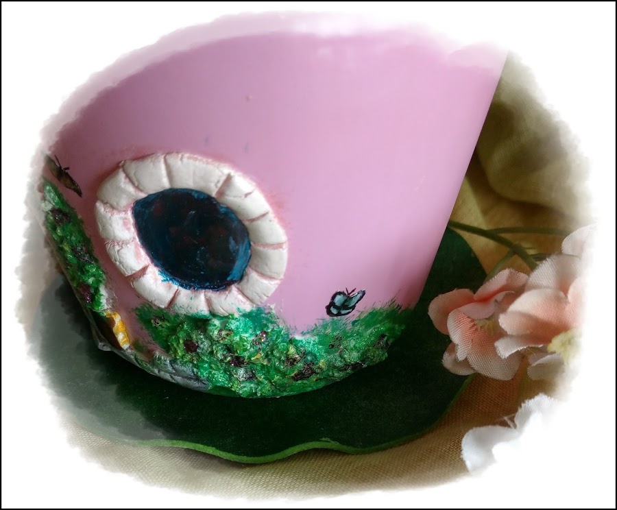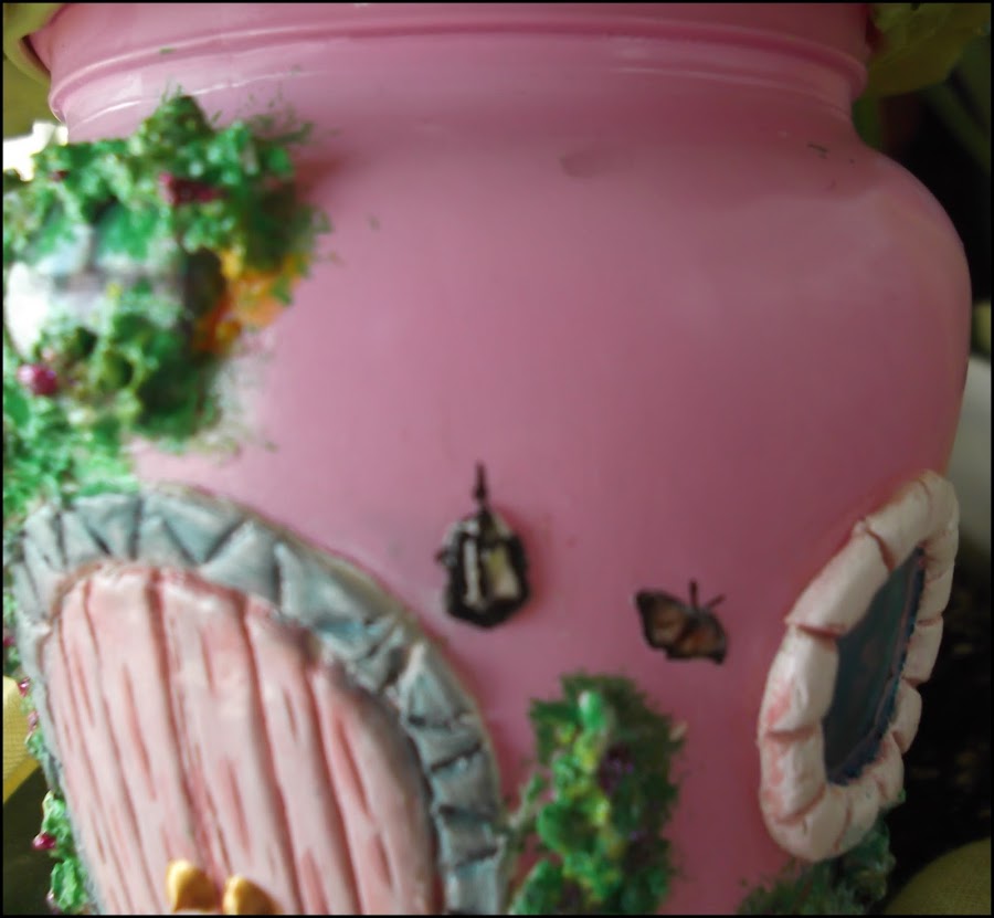 El farol y las mariposas son imágenes que imprimí y luego recorte para pegarlas encima de la pasta y así quedan en relieve. Confieso que el trabajo de los detalles tan pequeños resultó dificil pero el efecto como veis en las fotos queda ideal. Mi admiración desde aquí a las personas que trabajan y hacen miniaturas.
