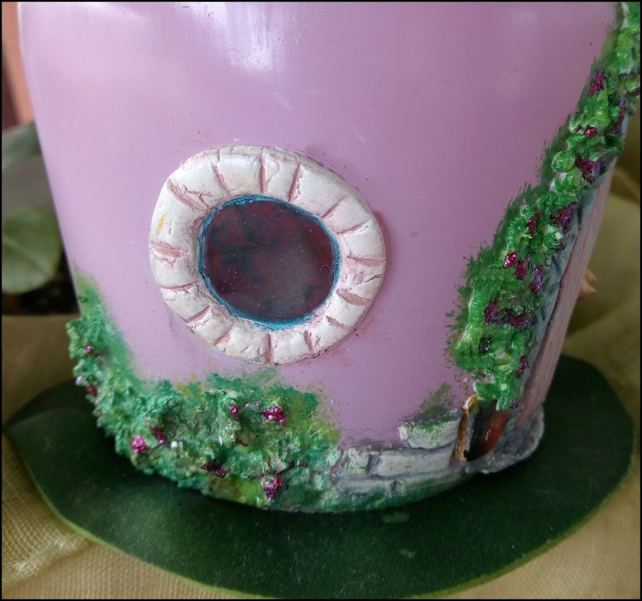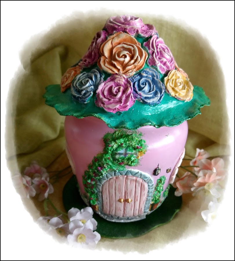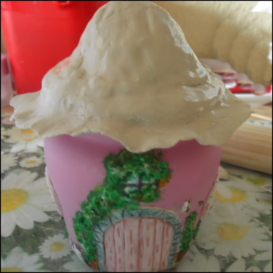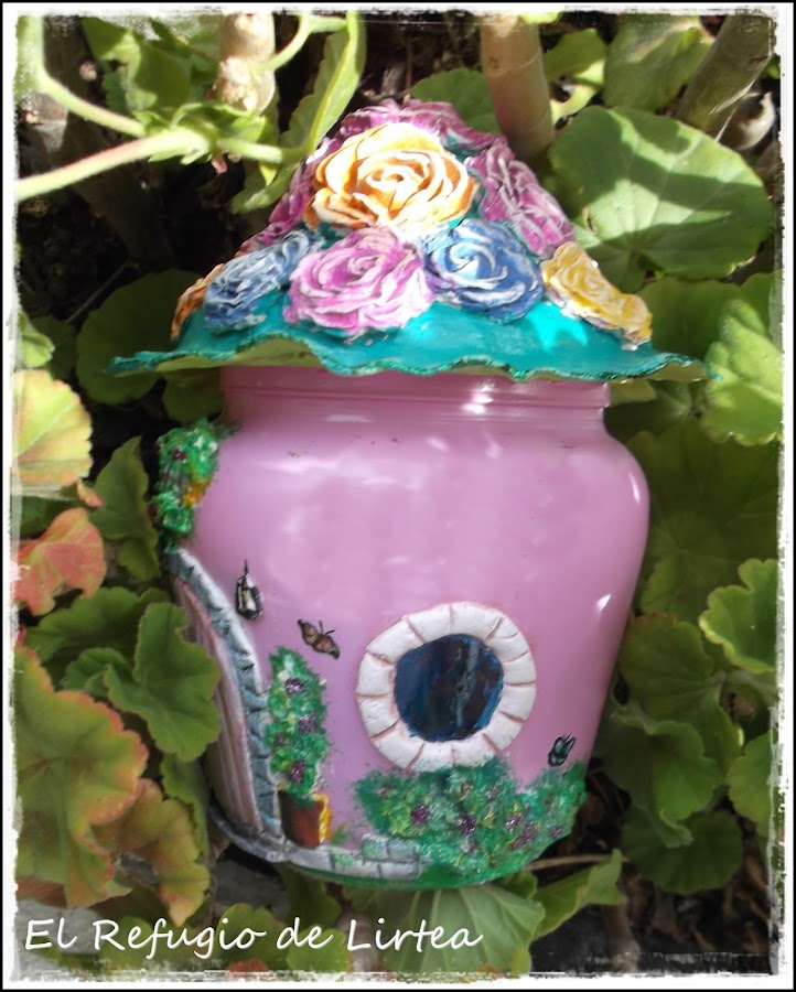 Pues resulta que en un principio había hecho otra casita, pero cuando la vio mi sobrina pequeña me dijo:"Tia, si me gusta, pero esta casita no es de hadas sino de gnomos".