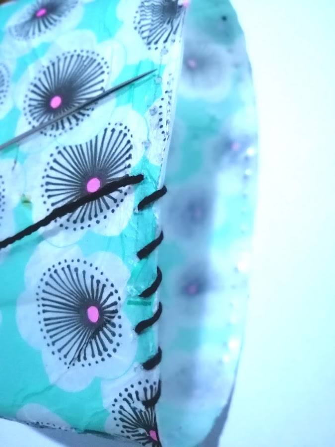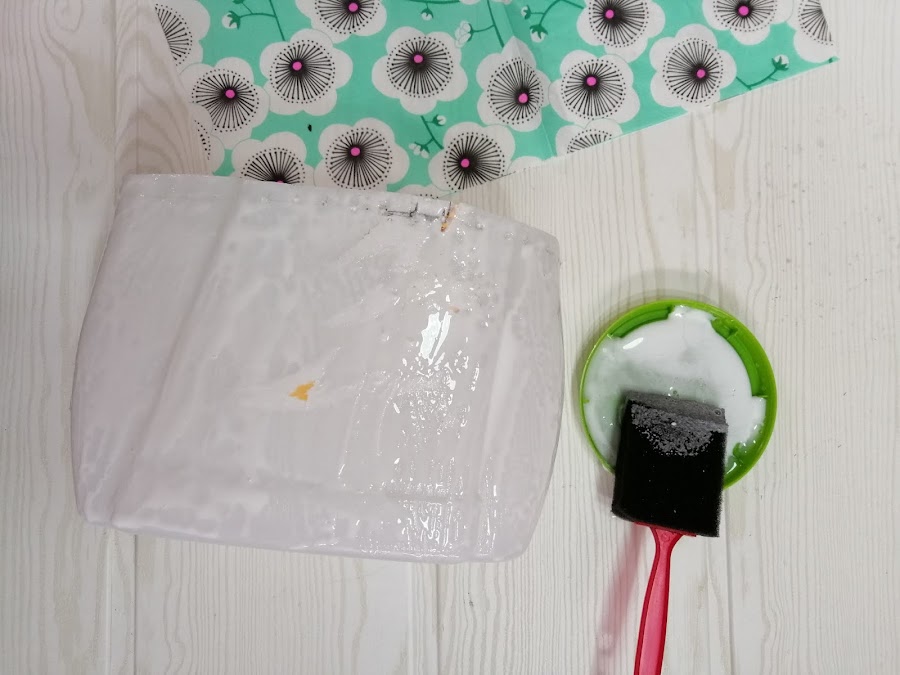 4º Empezamos con el decopach...Ponemos cola y pegamos el papel (Primero hay que quitar la capa blanca y dejar solo la de color) .
