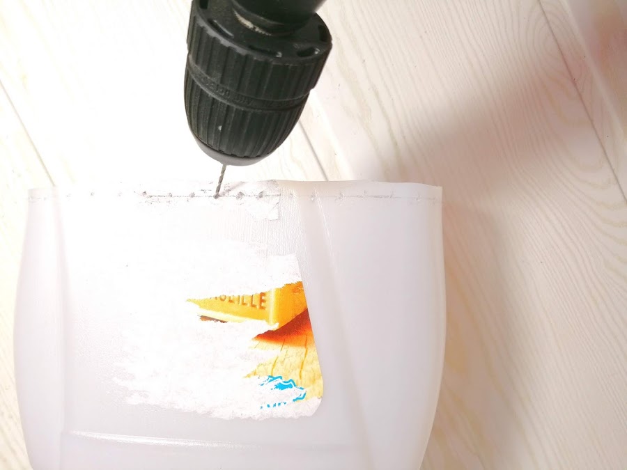 1º Marcamos y cortamos la botella de detergente con el cutter.