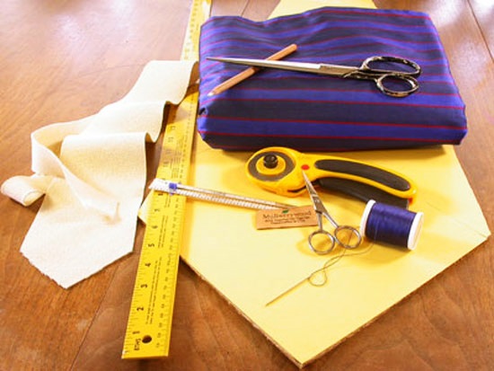 Regla, lápiz, hilo, aguja, alfileres