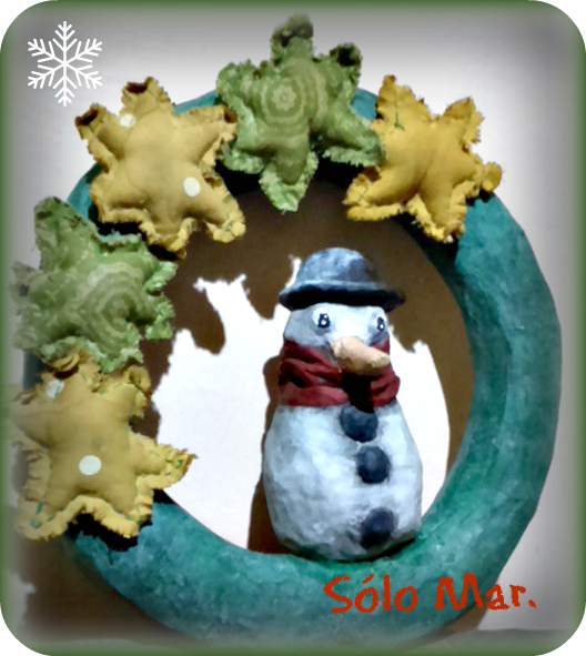 Tenemos la corona lista , el muñeco de nieve seco y las estrellas terminadas , sólo nos queda hacer el montaje final.