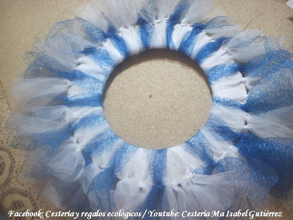 Finalmente, pegamos un hilo resistente por atrás de la corona (para colgar) y un lindo lazo y estaría lista! Si te ha gustado mi trabajo, te agradeceré mucho me ayudes a difundir el reciclado compartiendo en tus redes sociales, de antemano, muchas gracias!