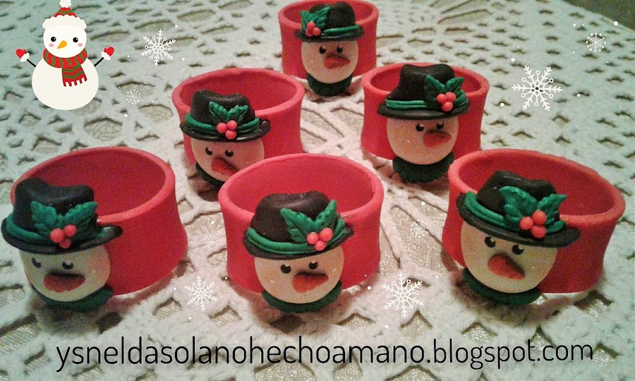 Los Muñecos los recortaremos en Fieltro blanco y le pondremos a cada uno un par de gorritos y bufandas de colores verde y rojo, muy navideños.