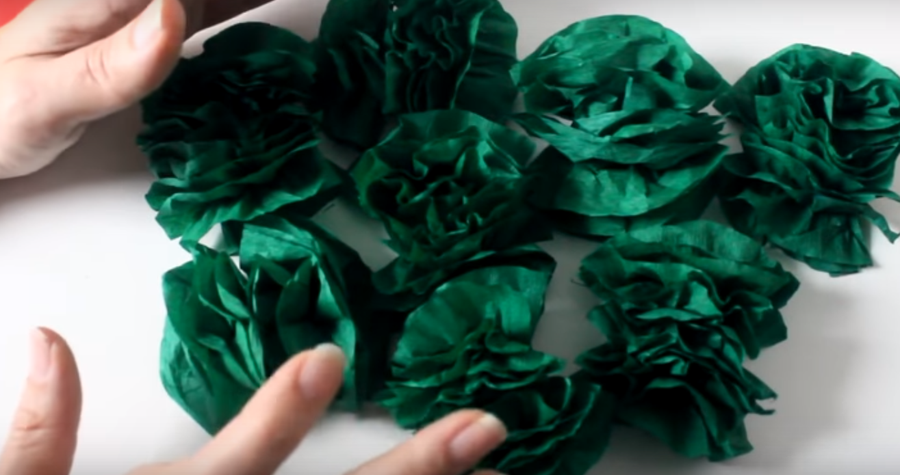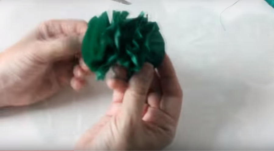 ...tenemos que hacer la cantidad suficiente de pompones verdes que alcancen para cubrir unas 2/3 partes del aro...