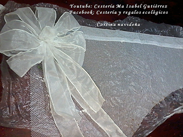 Pegamos con silicón, un lazo o moño grande en el extremo izquierdo, parte superior de la tira, no olvides poner hule abajo del tul, para que luego sea fácil despegar la cortina....