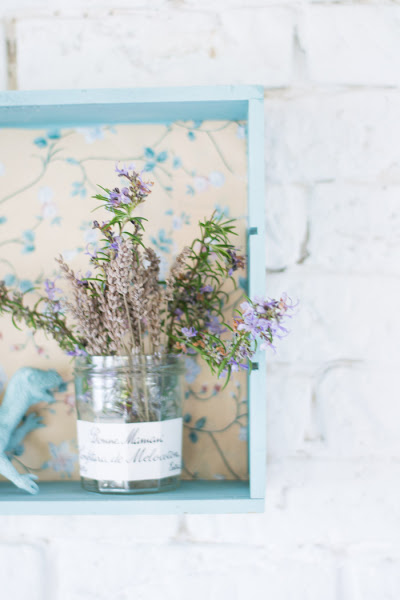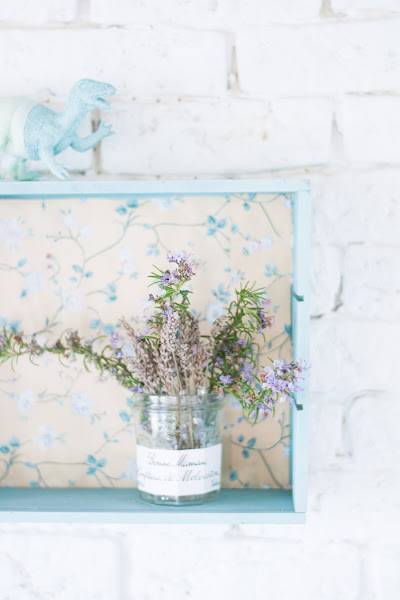 Este azul me pareció que contrastaba muy bien con el forro adhesivo. Pintamos nuestra caja y cuando esté seca la forramos con el papel, cortando la medida con un cúter.