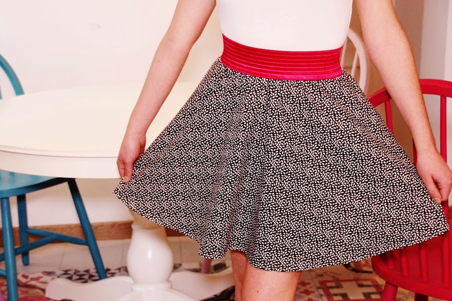 Un detalle que no puedes olvidar, cosemos la cintura a la falda con una puntada elástica, zig-zag, por ejemplo, es una buena opción. Por lo demás es todo muy sencillo.