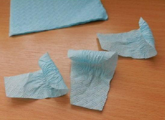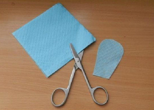 1) Cortamos la servilleta en forma de "bombilla" o foco de luz incandescente, fíjate en la imagen de abajo para darte una idea.