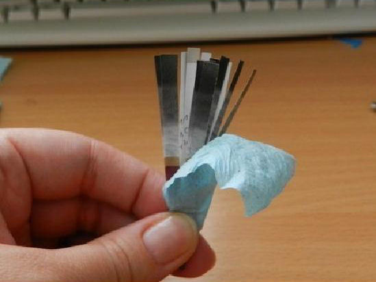 2) Enrollamos uno de los cortes que hicimos de la servilleta en el bolígrafo.