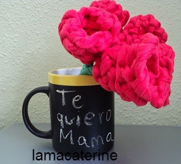 Con una taza de revestimiento de pizarra improvise un jarrón-felicitación y puse 6 flores. ¿Que os parece el resultado como regalo diferente para el día de la madre?