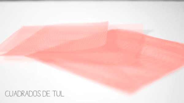 - Unos cuadrados de tela de tul, en cuatro láminas. El tul lo podéis encontrar en Traetela, en el siguiente enlace: