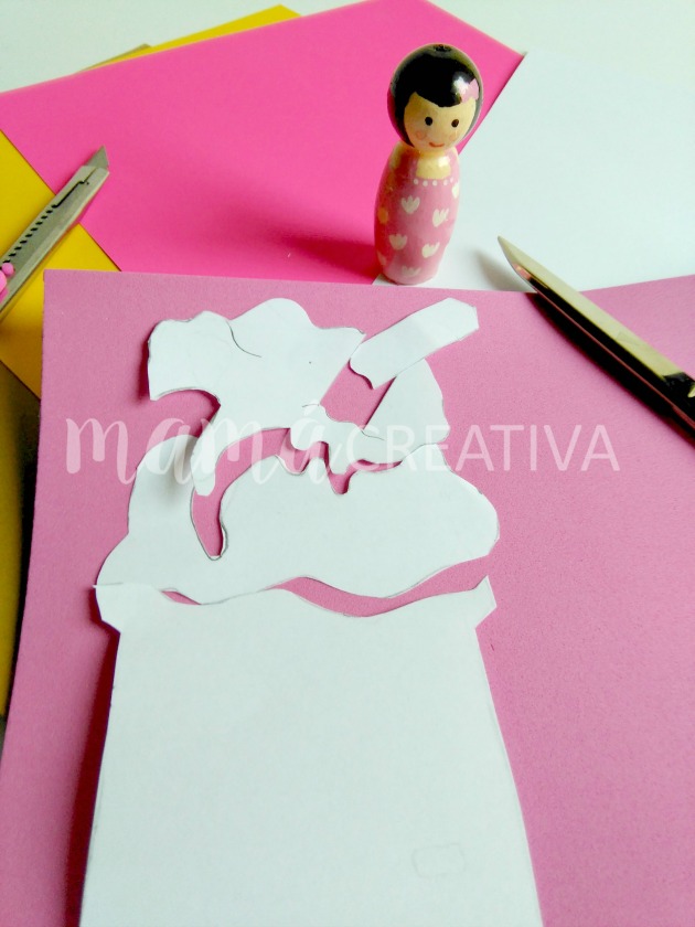 A continuación, recortamos la plantilla del diseño realizado y lo copiamos en las cartulinas, para cortarlo nuevamente .