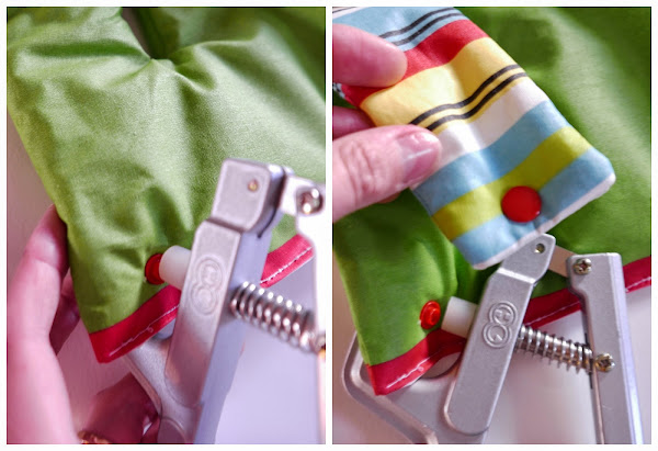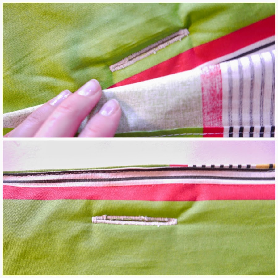 Bordamos el ojal en el cojín, que quedará debajo de la vista. Importante: que quede suelta la vista, no coserla también (va suelta)