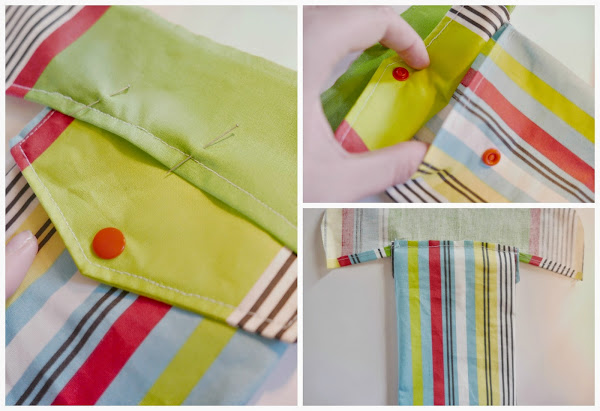 Además, hemos hecho cambios incorporado snaps como sujección, en lugar del velcro y un bolsillo trasero en el que puedes guardar su babero...