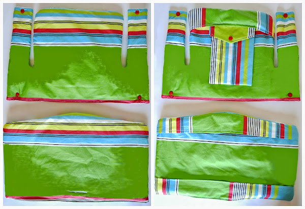 Derecho y revés de la funda de trona, podéis ver cómo he jugado con la tela