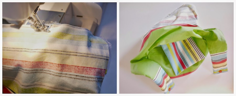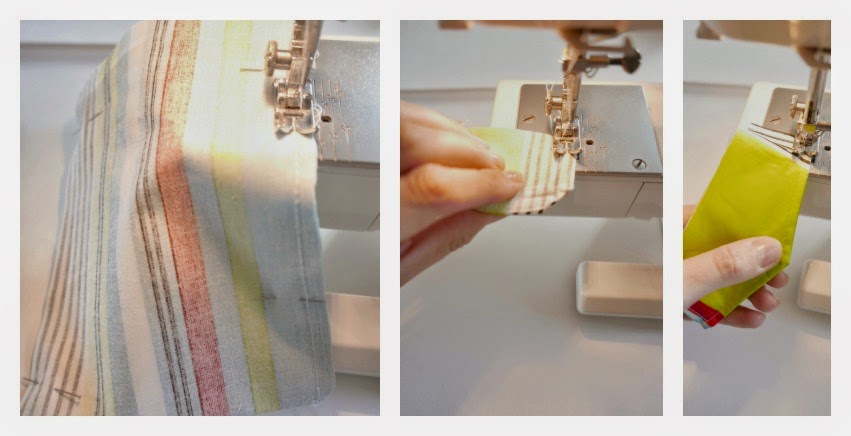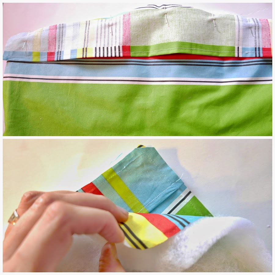 Cortamos la tela exterior y la guata, si es de rayas como esta