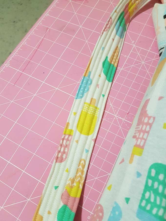 Para el asa me decidi por usar espuma estabilizadora ya que le da un acolchado y efecto genial. corte una tira del ancho del asa (sin costuras) y la coloque en la mitad, deja planchadas las costuras hacia dentro, sujeta con alfileres y cose el lado abierto con una puntada lo más cerca que puedas del borde (unos 2mm esta perfecto) y luego realizas otra costura similar en el otro lado del asa para que quede simetrico. además yo le he realizado un acolchado lineal con varias lineas a distancia de prensatelas.