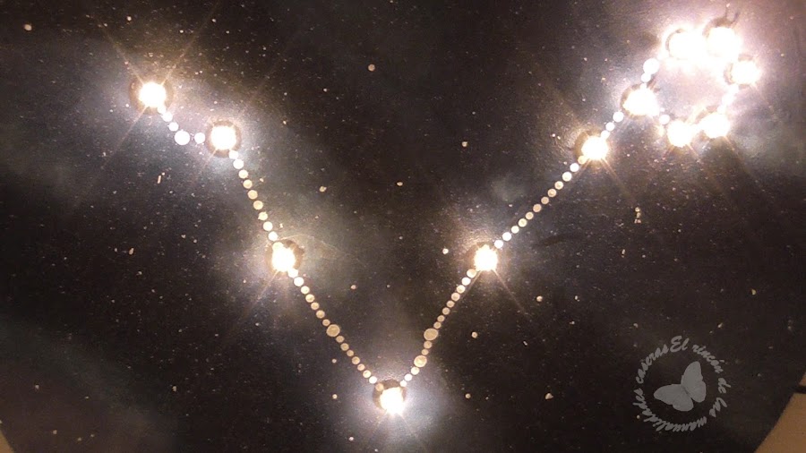 Este trabajo se va derechito al RETO AMISTOSO Nº 92 que organiza mi compi Myriam del blog Ideadoamano y el tema que ha escogido es CIENCIA, que he de reconocer al principio no se me ocurría nada para participar, estuve dándole vueltas a varias ideas y al final me pareció que una Galaxia con mi constelación sería lo mejor, espero que os guste igual que a mi y os paséis a ver todas las propuestas que mis compañeras nos enseñan, que son geniales.